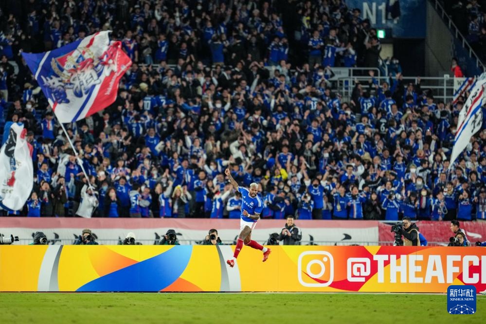 3月13日,橫濱水手隊球員安德森·洛佩斯在比賽中慶祝進球。新華社記者 張笑宇 攝