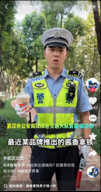 “武漢公安”抖音賬號以“發布權威資訊、服務警務實戰、增進警民溝通”為宗旨,圍繞省廳、市局中心工作,聚焦中心工作,及時宣傳報道,提升群眾安全感、滿意度。2023年9月,“醬香拿鐵”產品推出后,很多網友疑惑,到底含不含酒精,喝后能不能開車。武漢公安快速反應,組織人員拍攝制作,是公安系統發布最快的視頻之一。該視頻內容引發網友關于酒駕醉駕的關注討論,用網民喜聞樂見的方式傳播交通安全知識,是一次利用熱點進行普法傳播的優質案例。該視頻在抖音單平臺播放量超過1.7億次,獲得195萬次點贊。網民紛紛表示“希望這樣干實事、干好事的視頻多一點”。