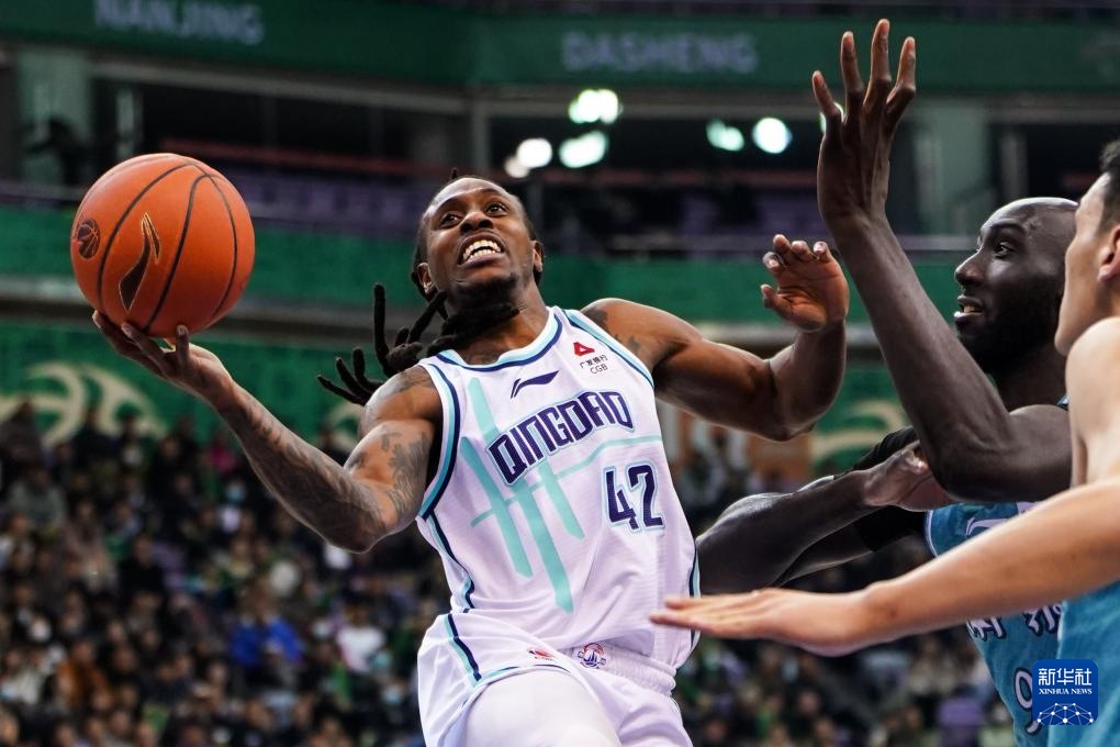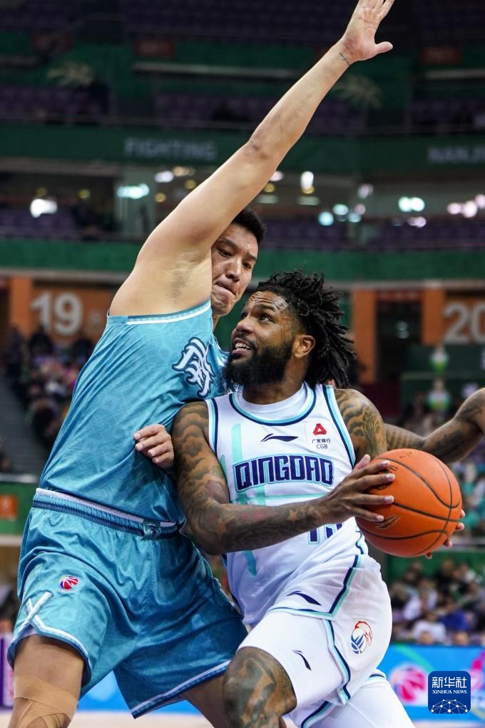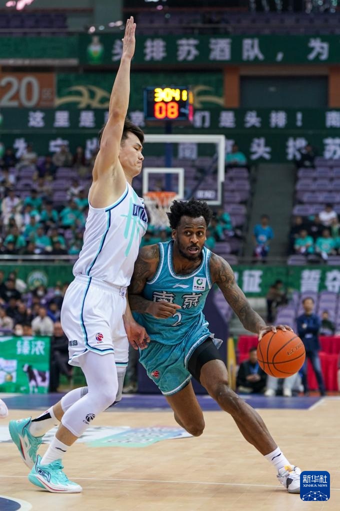 3月14日,南京頭排蘇酒隊球員布萊克尼(右)在比賽中突破。新華社記者 李博 攝
