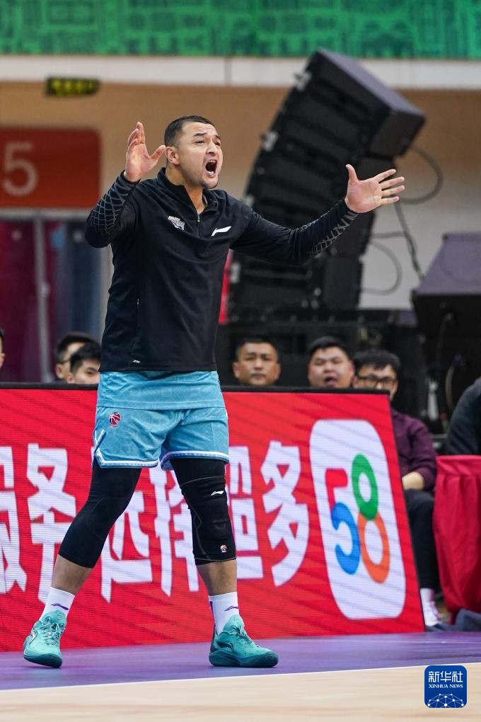 3月14日,南京頭排蘇酒隊球員兼主教練西熱力江在場邊指揮。新華社記者 李博 攝
