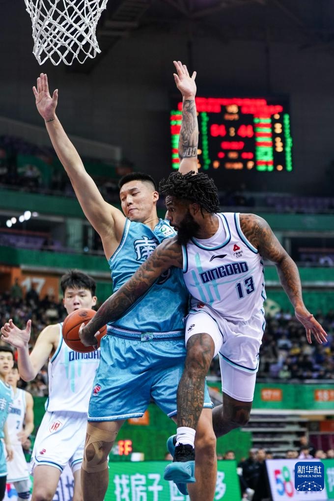 3月14日,青島國信水產隊球員穆迪(左)在比賽中突破。新華社記者 李博 攝