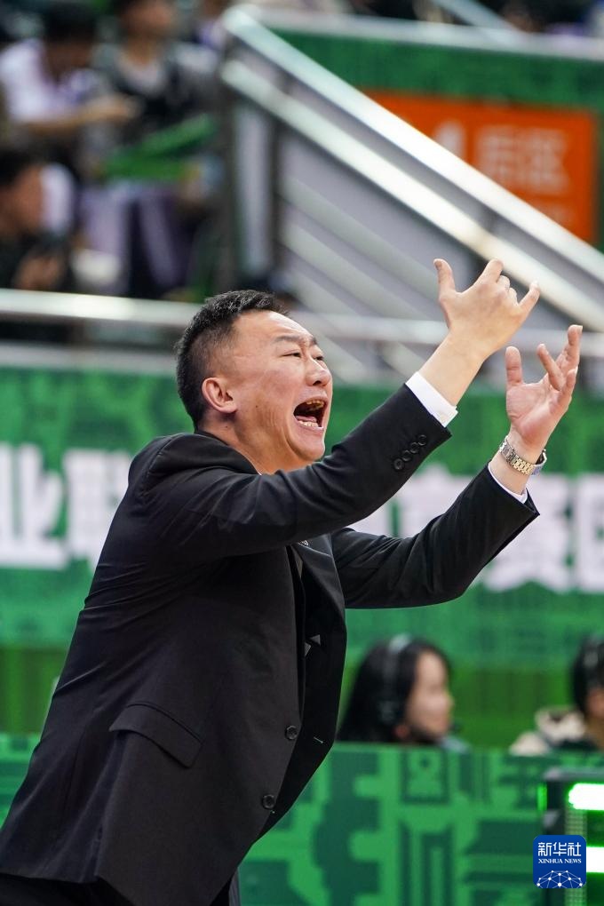 3月14日,青島國信水產隊主教練劉維偉在場邊指揮。新華社記者 李博 攝