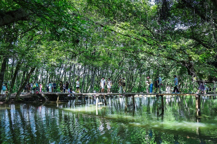 2023年8月4日,游客在黃山市徽州區西溪南鎮西溪南村游覽。新華社記者 劉軍喜 攝