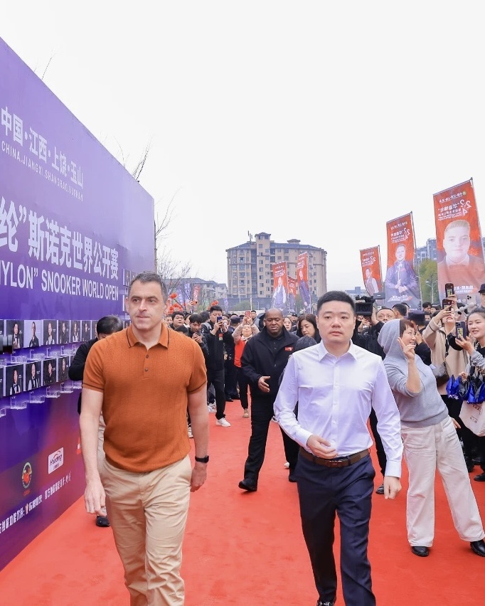 奧沙利文、丁俊暉在世界公開賽紅毯儀式上亮相。