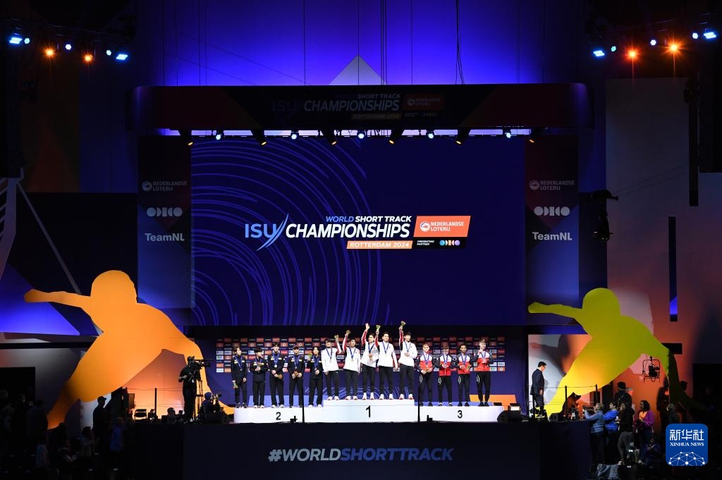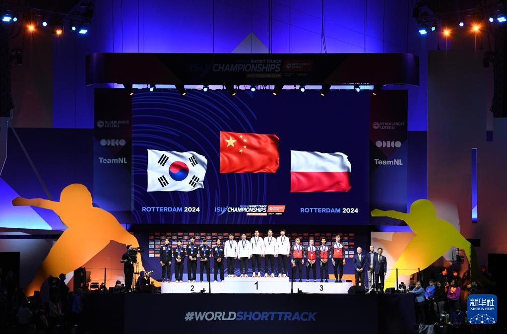 3月17日,冠軍中國隊(中)、亞軍韓國隊(左)和季軍波蘭隊在頒獎儀式上。新華社記者 連漪 攝