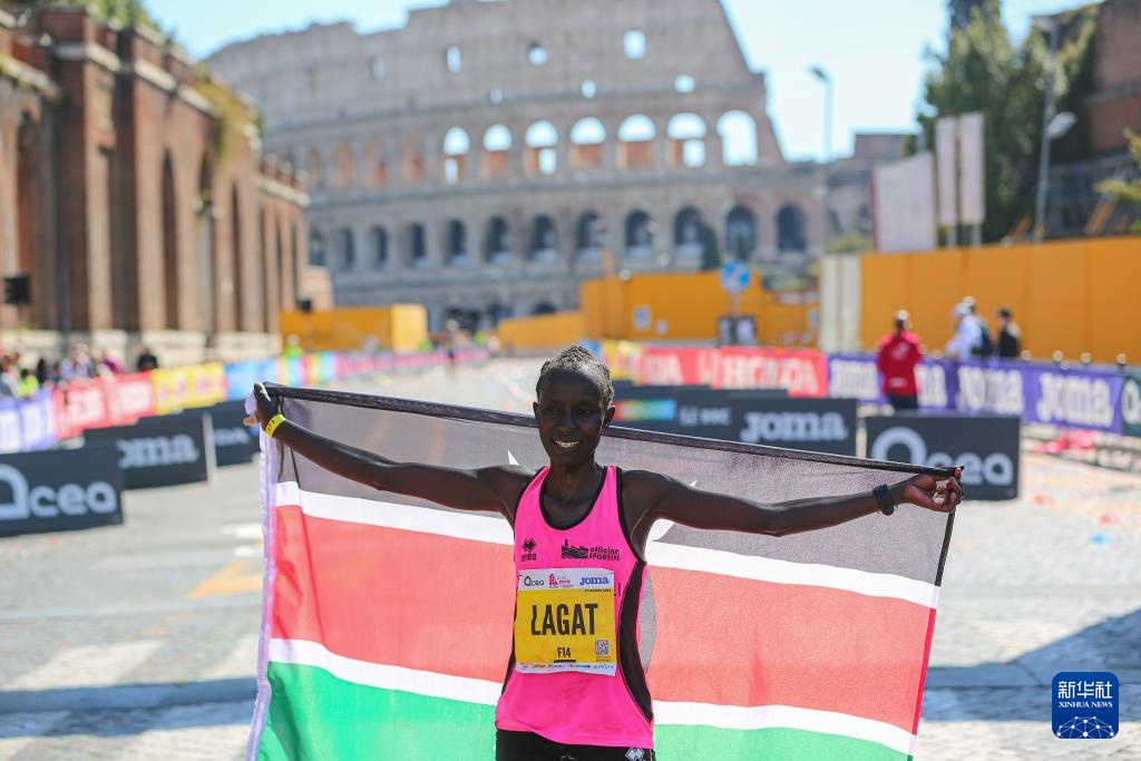 3月17日,肯尼亞選手拉加特在奪冠后慶祝。她以2小時24分36秒的成績獲得女子組冠軍。新華社記者 李京 攝