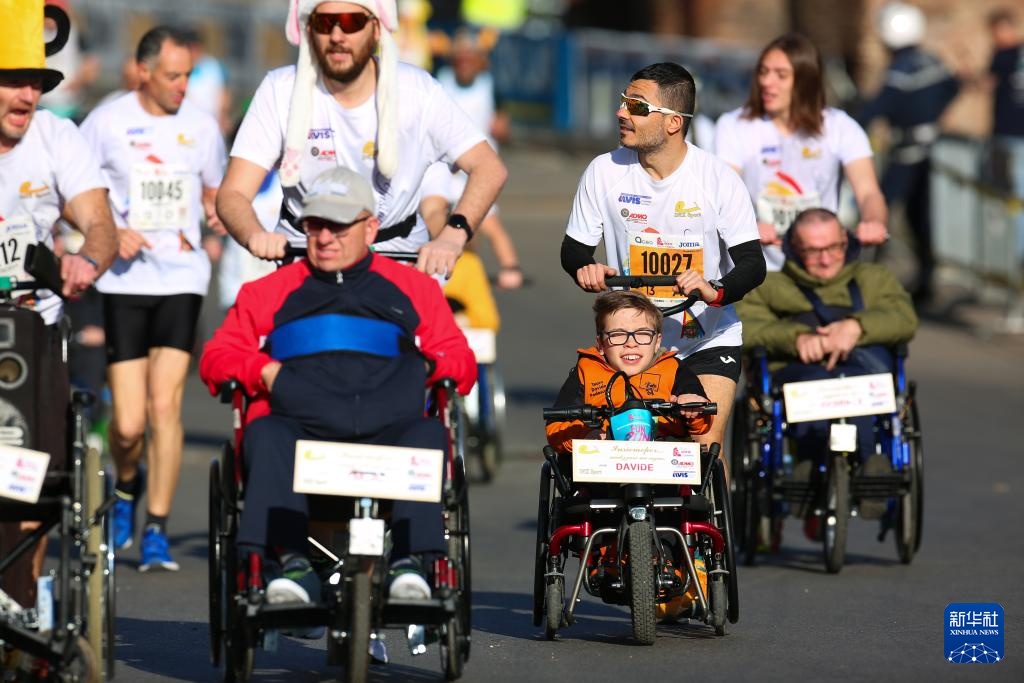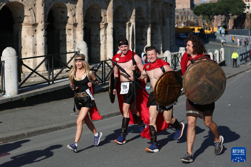 3月17日,參賽選手經過羅馬斗獸場。新華社記者 李京 攝
