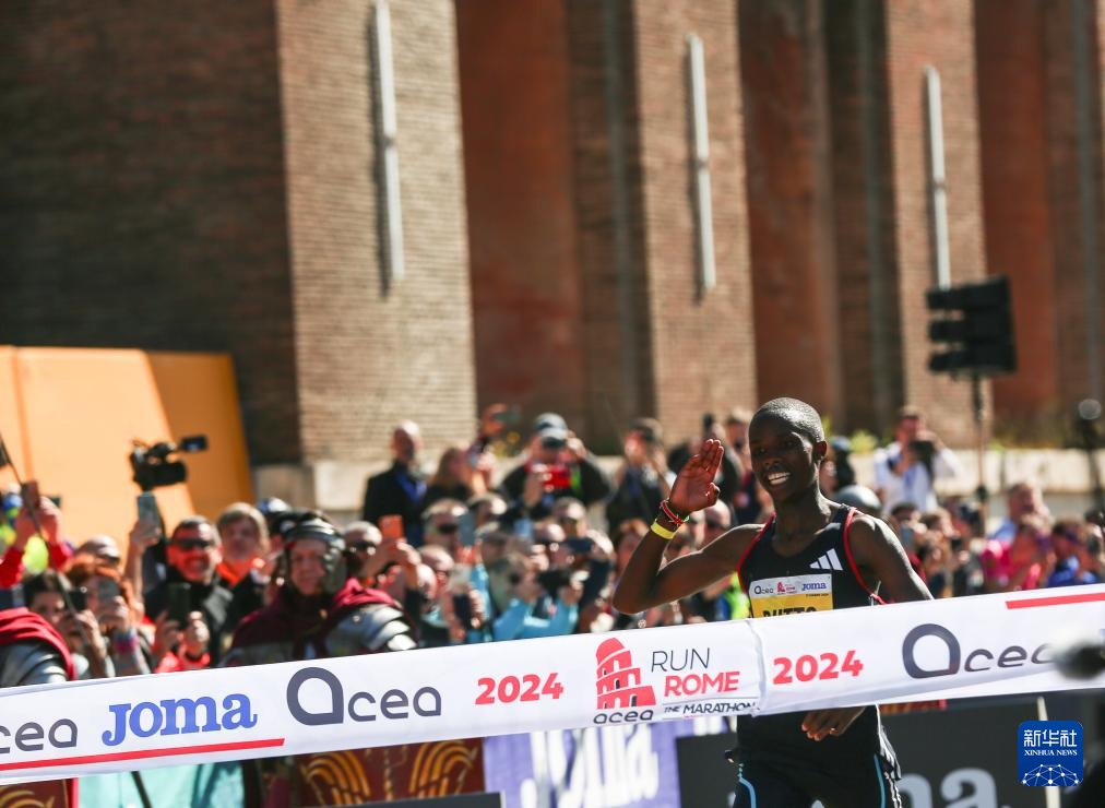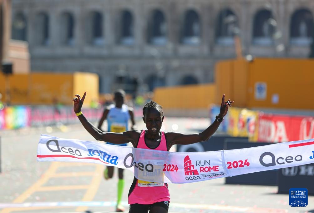 3月17日,肯尼亞選手拉加特在比賽中沖線。她以2小時24分36秒的成績獲得女子組冠軍。新華社記者 李京 攝