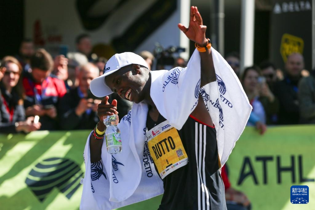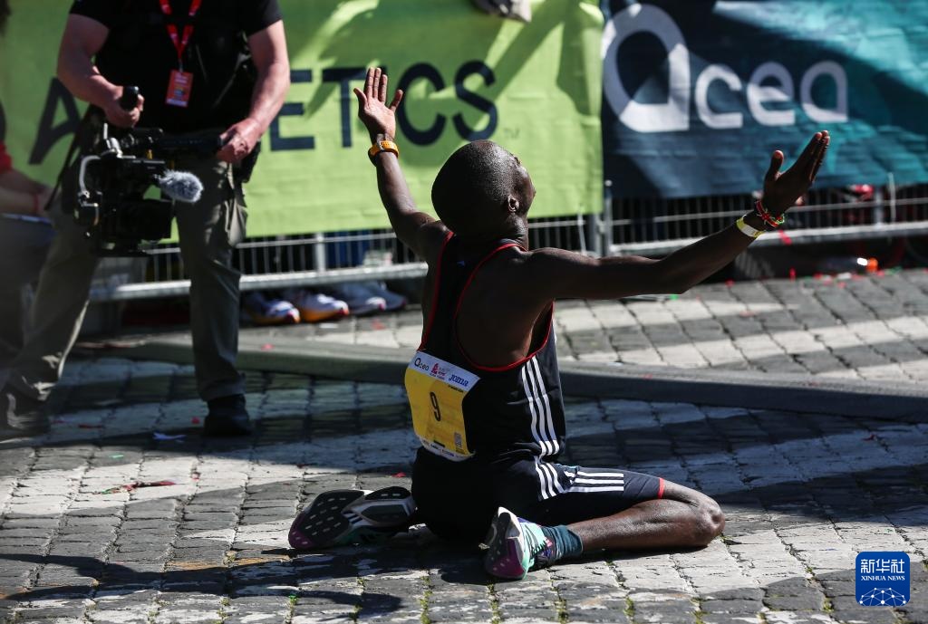 3月17日,肯尼亞選手阿斯貝爾在奪冠后慶祝。他以2小時6分24秒的成績獲得男子組冠軍。新華社記者 李京 攝
