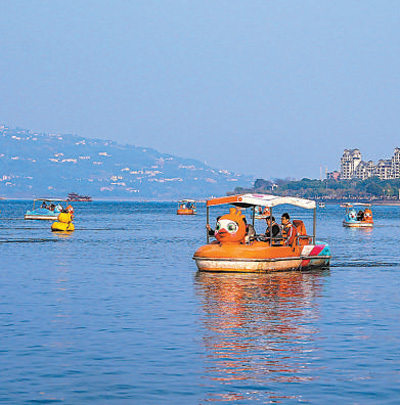 重慶市開州區漢豐湖景區景美如畫,游客在觀光游玩。 王曉宇攝(人民視覺) |
