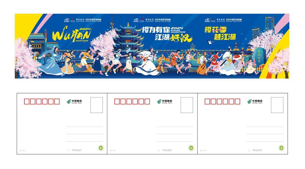 此外,湖北郵政還將為本次“漢馬”發行健康跑、半程馬拉松、全程馬拉松、線路圖四枚明信片。明信片以“漢馬”標志性的藍色和黃色為主色調,配上櫻元素,洋溢著愉悅與活力。立體郵折將大武漢的風采淋漓盡致地立體式展現在方寸之間。