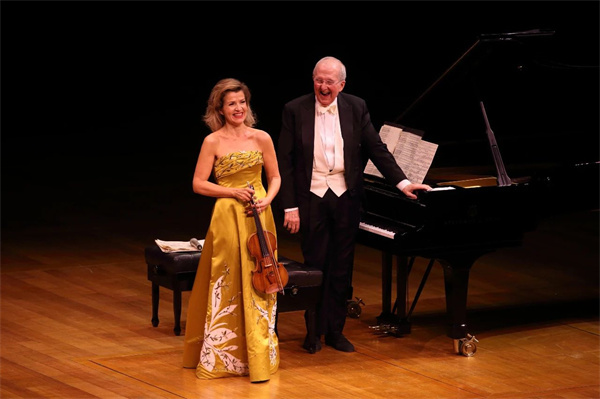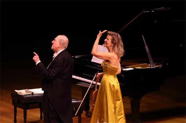 下半場,克拉拉·舒曼《為小提琴和鋼琴而作的三首浪漫曲》奏響,穆特在這三首作品中釋放出巨大的藝術能量,處理狂想曲式的線條、激烈的情緒時,她的張力令人驚嘆,而當旋律走向舒緩時,她的詮釋空靈優雅;雷斯庇基《b小調小提琴及鋼琴奏鳴曲》最后亮相,在這首個人保留曲目中,穆特揮灑自如,處處流露著她自卡拉揚時代以來的積淀與突破,一曲奏罷,全場喝彩不絕。