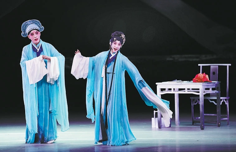 昆曲《浮生六記》的敘事手法,在現代文學、影視作品中相對常見,但在舞臺作品,尤其是昆曲這種古老藝術的作品上確實不多見,也為全劇賦予了現代氣息,這大概也是該劇能受現代觀眾喜愛的原因吧。除此之外,《浮生六記》原著中夫妻二人遇到的現實瑣事不見了,蕓娘“失歡于公婆”不見了,也造就了昆曲《浮生六記》并不古典的底層氣質,沈復的故事和昆曲的形式成為幻化的愛情符號、抒己之塊壘的素材。但反過來看,這不失為一種進入傳統藝術的方式,也可以成為昆曲走進現代生活的有益嘗試。 記者 方非 攝