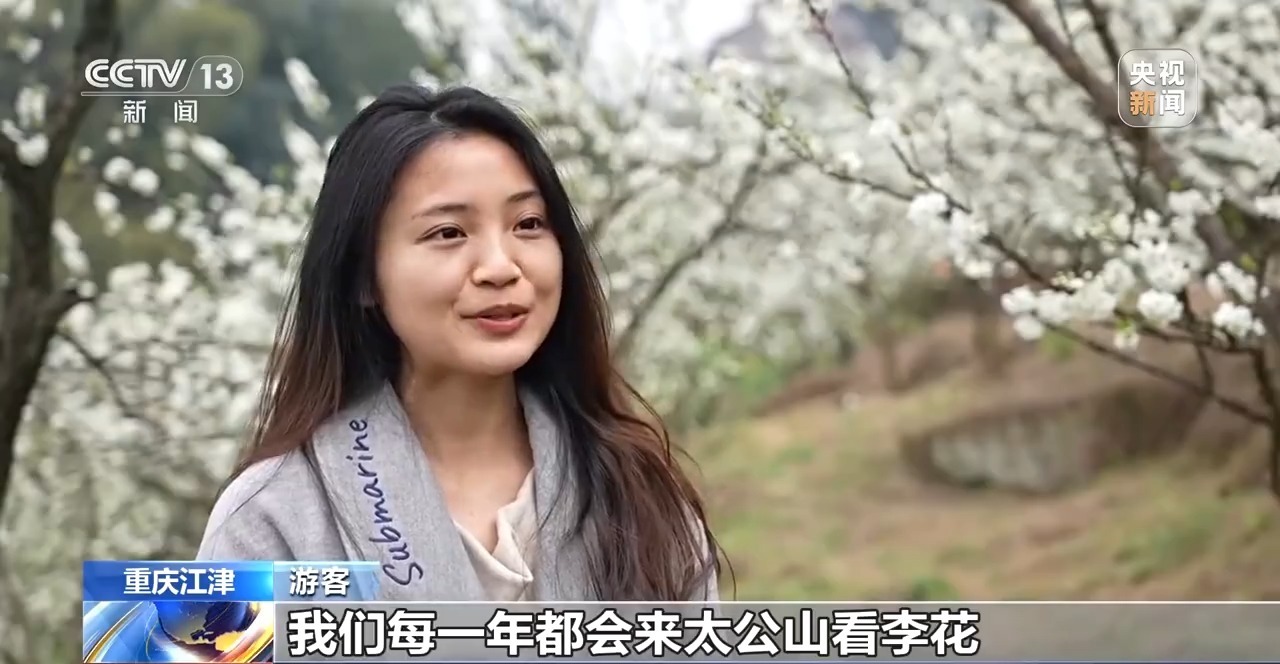 游客:我們每一年都會來太公山看李花。漫山遍野的李花,讓我們覺得心情是十分舒暢。