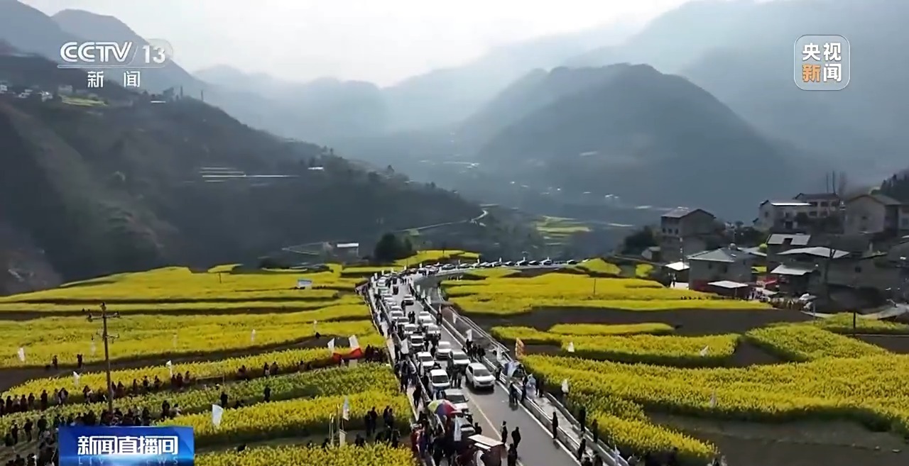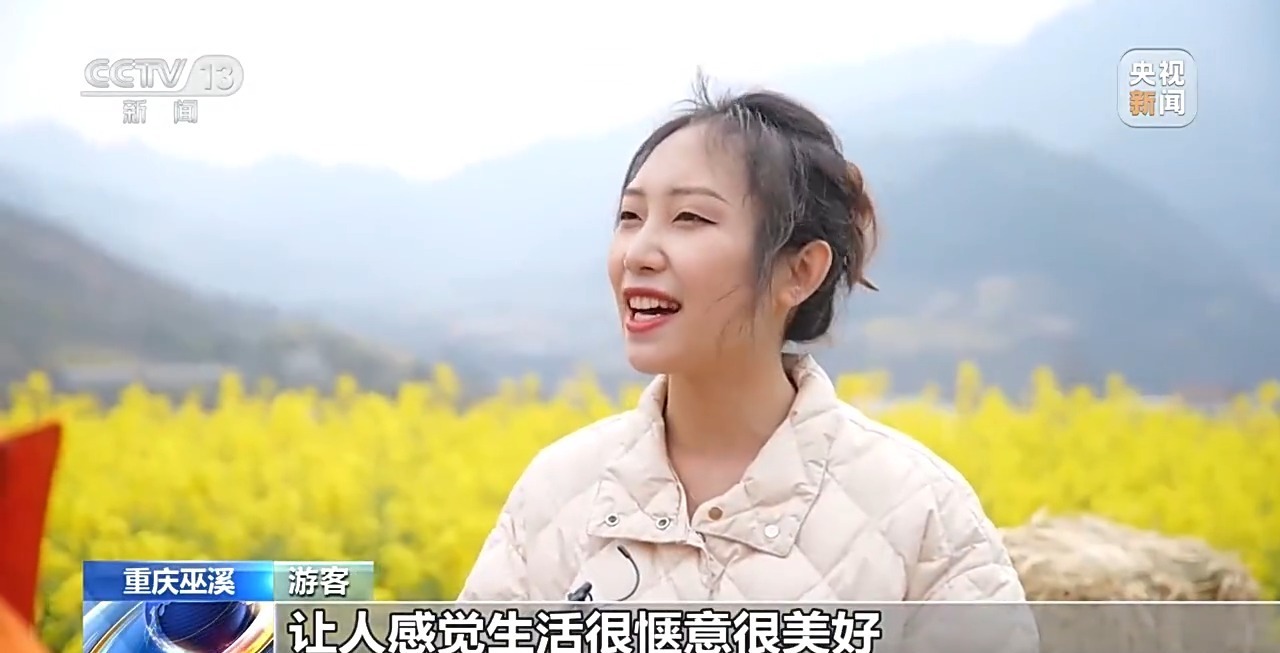 在重慶巫溪白鹿鎮下壩村,成片的油菜花也競相綻放,花田錯落有致,與巴渝民居、鄉間小道相映成景。漫步田間,油菜花香撲鼻而來,讓人感受到濃濃的春意,不少游客“聞”香前來,在花海里自拍、賞花、游玩,勾勒出一幅美麗的春日畫卷。