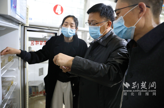 檢察長曹中啟(中)檢查食品儲存。 通訊員 供圖