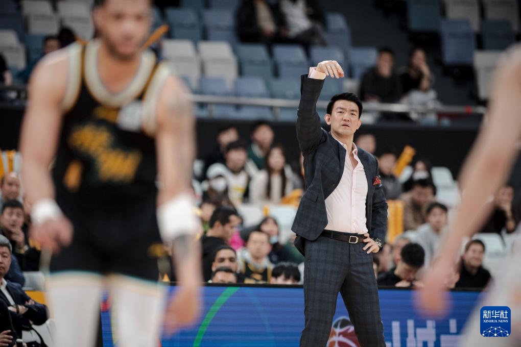 3月19日,浙江東陽光藥隊主教練王博在比賽中指揮。新華社記者 江漢 攝