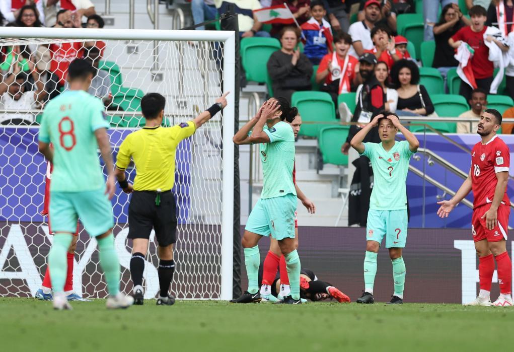 1月17日戰(zhàn)平黎巴嫩隊(duì)的亞洲杯小組賽中,中國(guó)隊(duì)球員張玉寧(中)、武磊(右二)先后錯(cuò)失進(jìn)球機(jī)會(huì)。新華社記者 賈浩成 攝