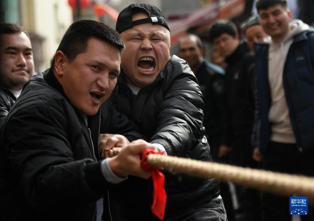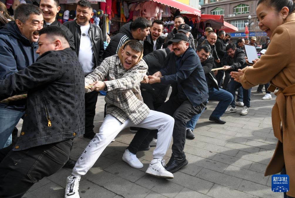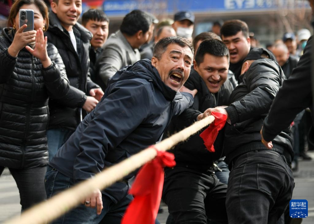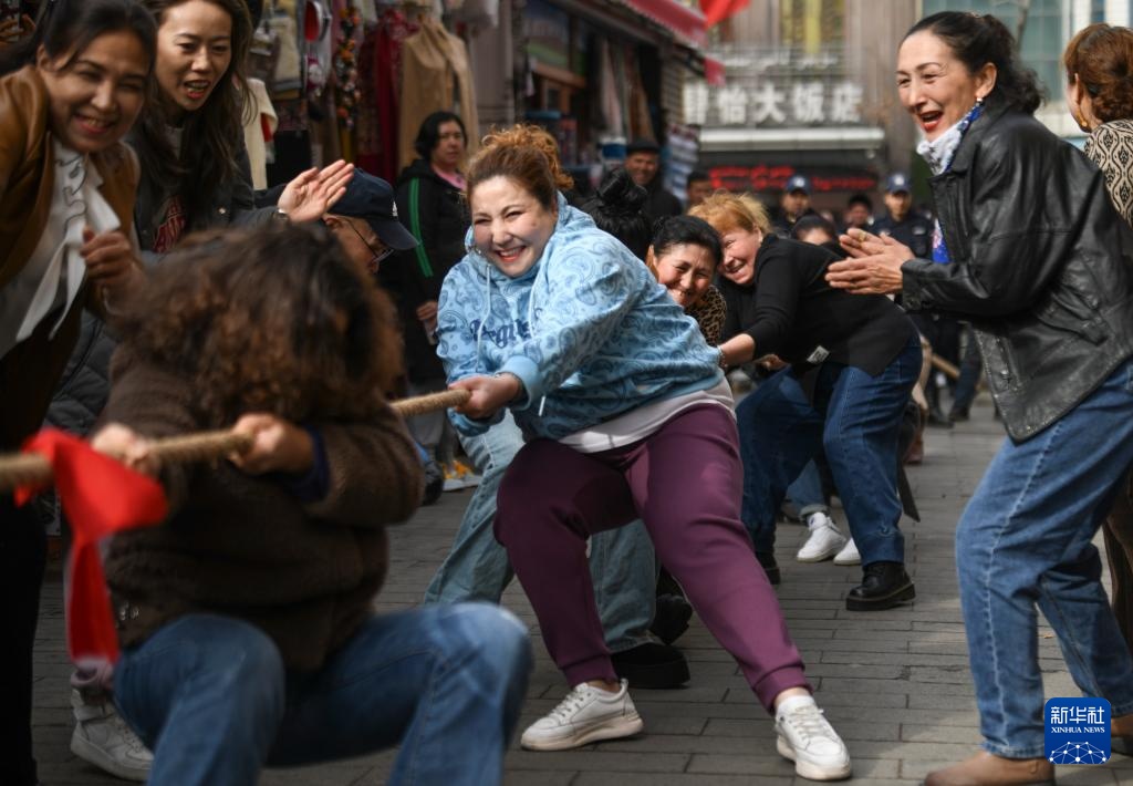 當日春分,烏魯木齊市天山區二道橋街道二道橋社區聯合轄區商城開展拔河比賽,倡導全民健身,享受春日暖陽。