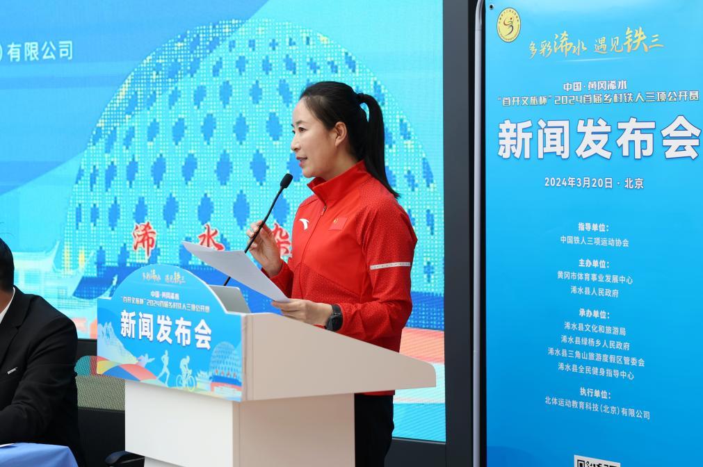 在發布會現場,奧運競走冠軍王麗萍向鐵人三項運動愛好者們發出邀請,今年四月相約湖北浠水。