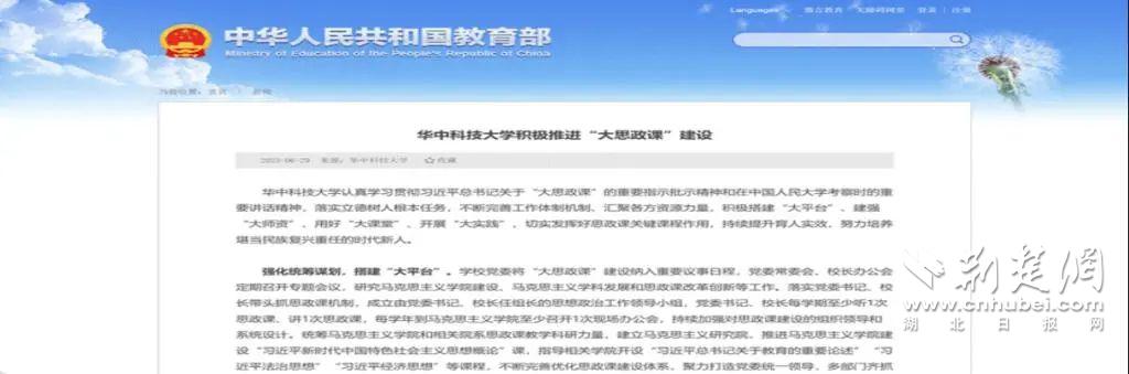 圖為2023年6月29日教育部網站推介該校“大思政課”建設工作特色亮點經驗