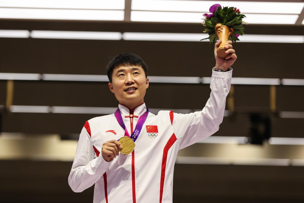 2023年9月25日,在杭州亞運會射擊項目男子25米手槍速射個人決賽中,李越宏奪得金牌。新華社記者 單宇琦 攝