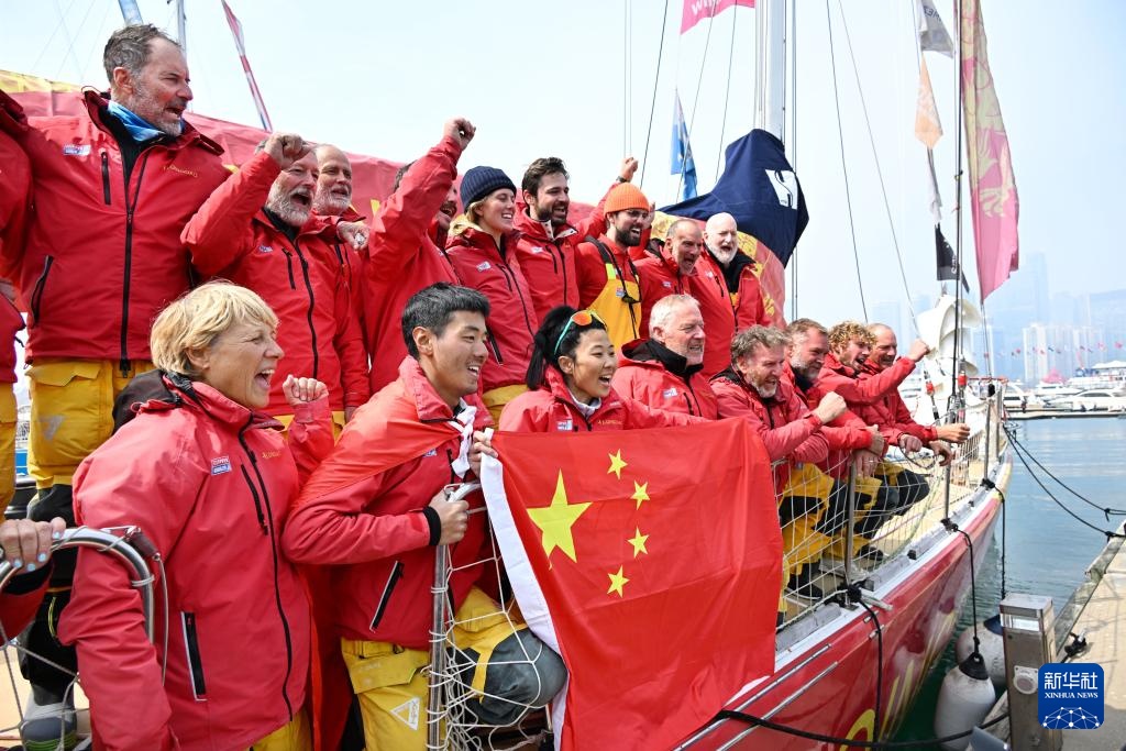 3月22日,青島號(hào)船員抵達(dá)后慶祝。新華社記者 李紫恒 攝
