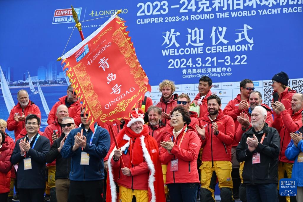 當(dāng)日,2023-24克利伯環(huán)球帆船賽青島站歡迎儀式在青島奧林匹克帆船中心舉行。