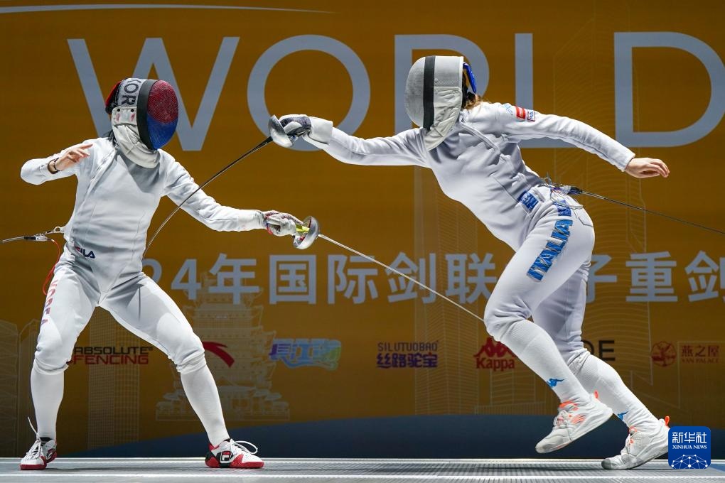 當日,2024賽季國際劍聯女子重劍世界杯(南京站)個人重劍決賽中,意大利選手里齊15比8戰勝韓國選手宋世羅,獲得冠軍。