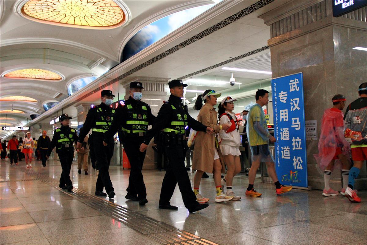 3月24日,武漢馬拉松賽正式開跑。當(dāng)日早上6時許,武漢市公安局軌道交通管理分局長安巡邏隊(duì)隊(duì)員早早來到三陽路地鐵站開展巡邏防控、客流疏導(dǎo)和服務(wù)乘客等工作,這也是他們成立以來第一次集體亮相“漢馬”。