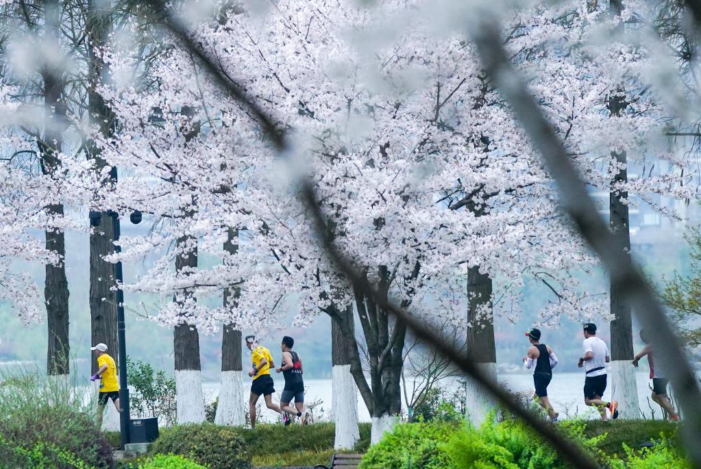3月24日,參賽選手經過武漢東湖綠道。新華社記者 程敏 攝