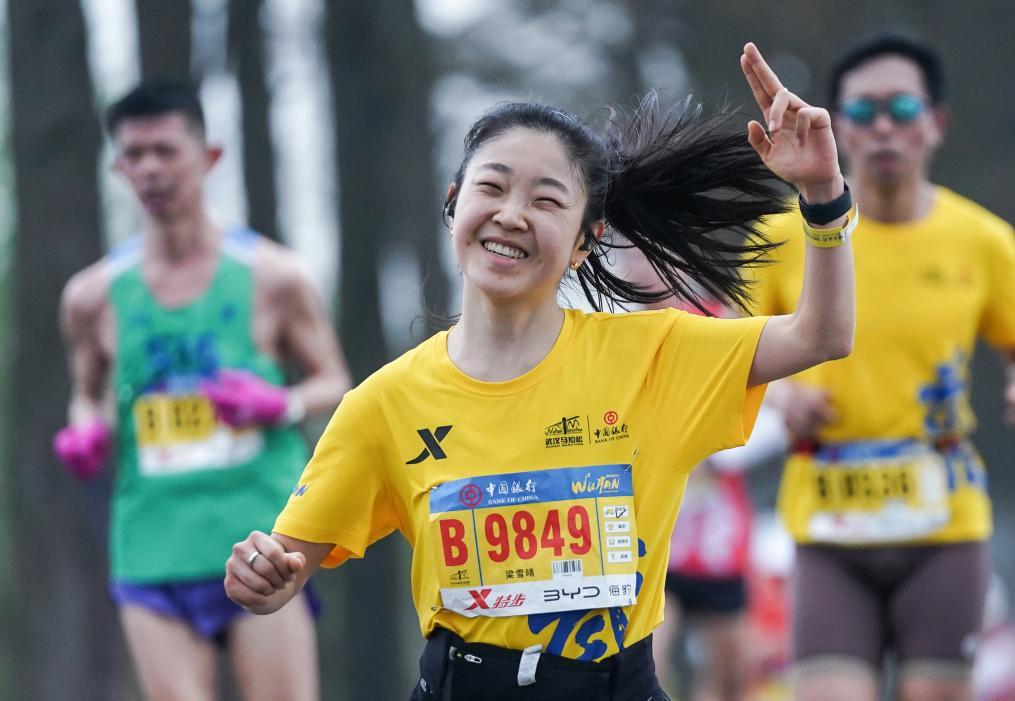 3月24日,參賽選手經過武漢東湖綠道。新華社記者 程敏 攝