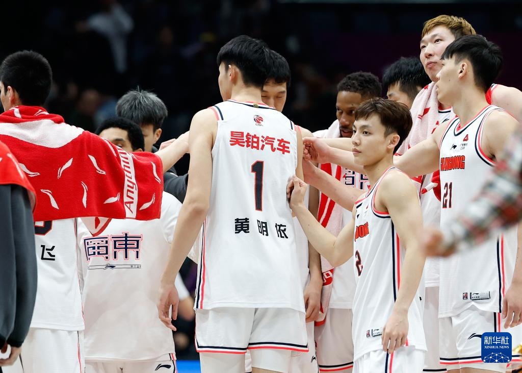 3月24日,廣東華南虎隊球員在賽后慶祝獲勝。新華社記者 王麗莉 攝