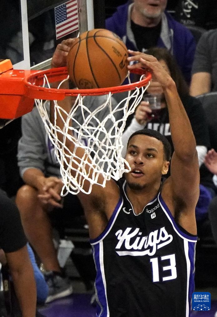3月25日,國王隊球員基根·穆雷在比賽中扣籃。新華社記者 吳曉凌 攝