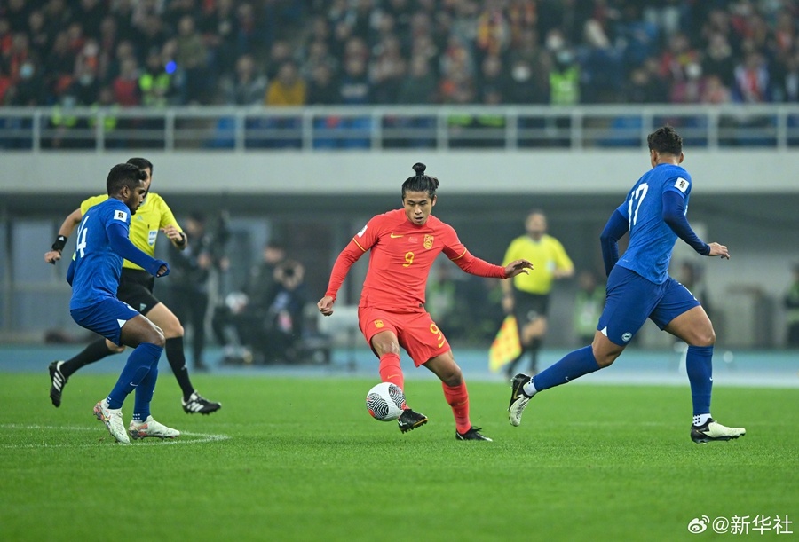 26日晚,在天津舉行的2026年國際足聯世界杯亞洲區預選賽36強賽C組比賽中,中國男足國家隊在天津主場4比1擊敗新加坡隊。(記者:肖世堯 張澤偉)