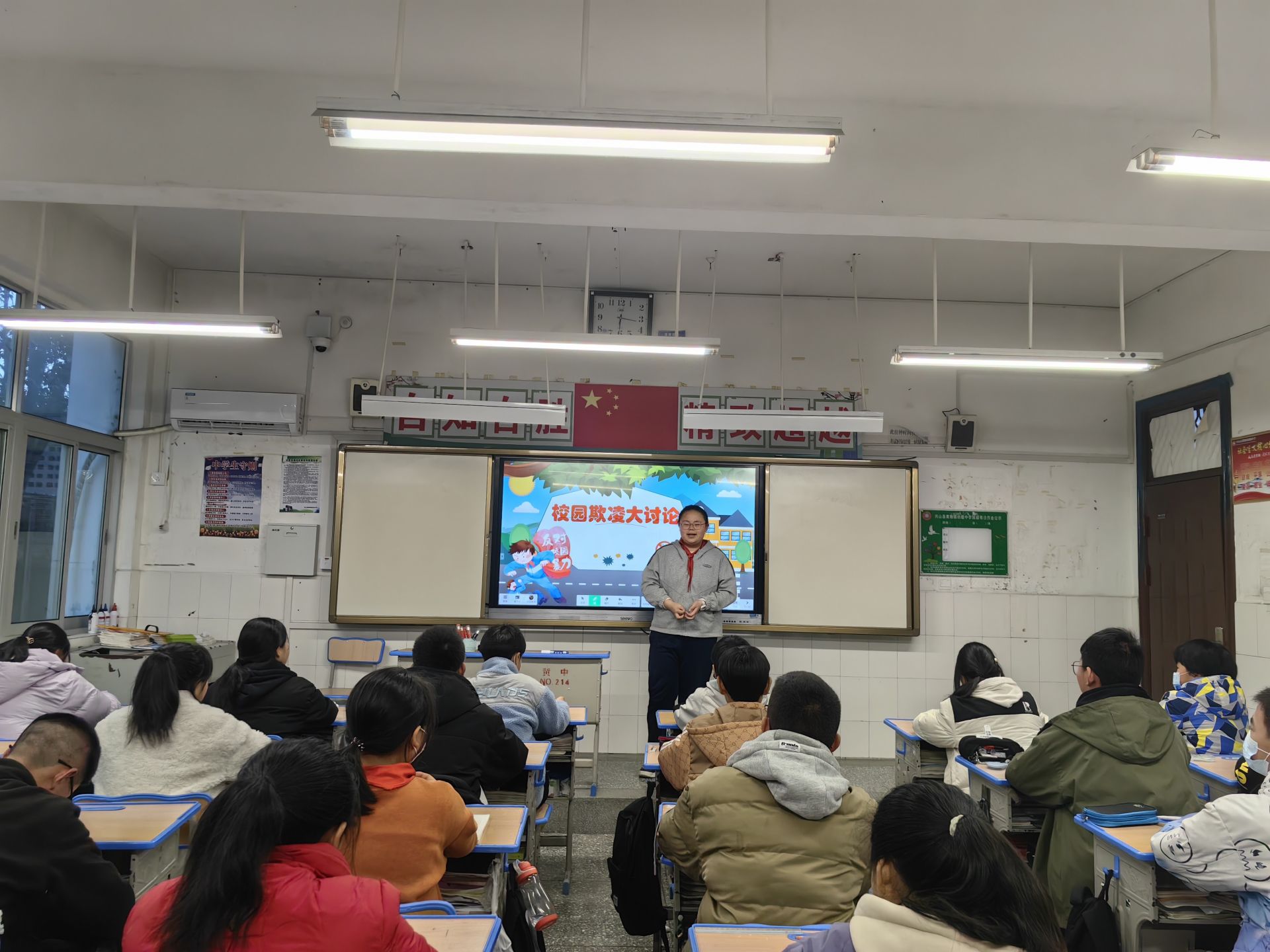 學(xué)校分班級開展了“校園欺凌大討論”主題班會,各班級成長導(dǎo)師走進(jìn)教室,師生共同討論日常生活中有哪些行為和現(xiàn)象屬于校園欺凌,面對校園欺凌我們可以采取哪些措施。此外,學(xué)校還通過問卷調(diào)查和黑板報等方式,宣傳預(yù)防校園欺凌的相關(guān)知識。