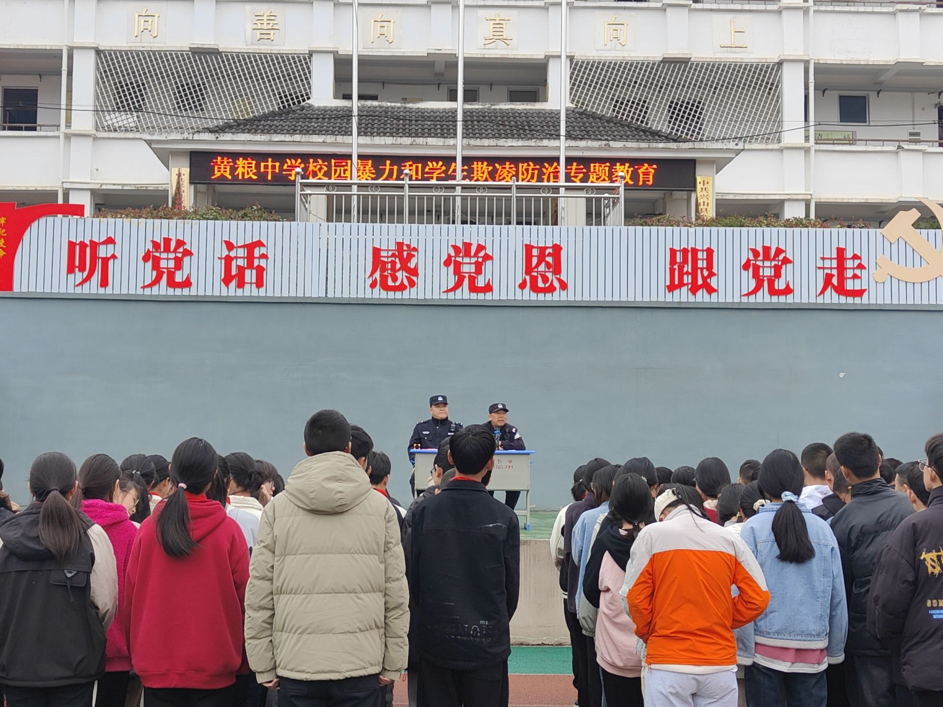學(xué)校特別邀請鎮(zhèn)派出所民警到校開展預(yù)防校園暴力和學(xué)生欺凌防治專題教育講座。在講座中,派出所民警通過生動的事例,向?qū)W生們介紹了校園欺凌的表現(xiàn)形式、預(yù)防及應(yīng)對措施,使學(xué)生們更加深入地了解校園暴力和學(xué)生欺凌的危害。