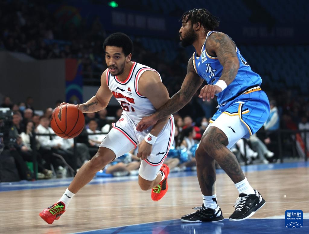 3月27日,廣東華南虎隊球員沃特斯(左)在比賽中帶球突破。新華社記者 張晨 攝