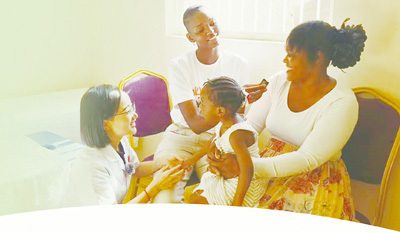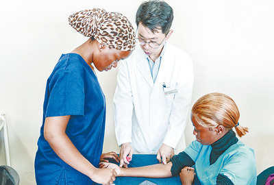 中國援津巴布韋醫療隊醫生胡莎(左一)為當地患者診療。