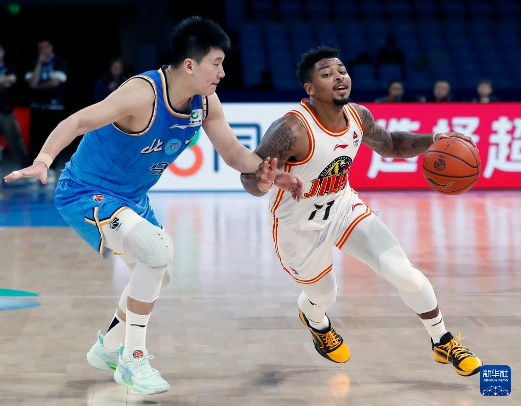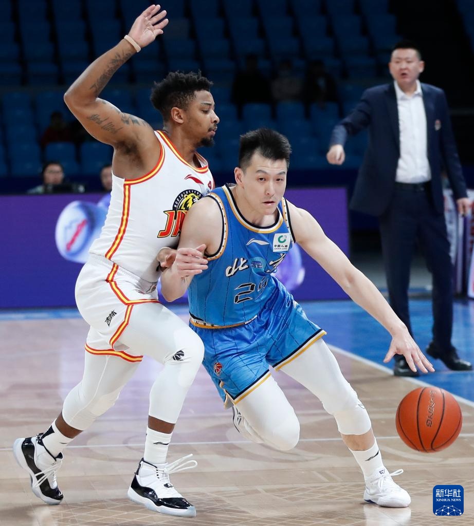 3月29日,吉林九臺農(nóng)商銀行隊(duì)球員姜偉澤(右)在比賽中突破。新華社記者 雒圓 攝