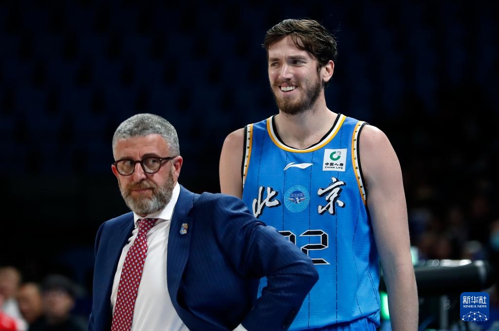 3月29日,北京北汽隊(duì)主教練喬里歐·格里喬里(左)和球員利夫在比賽中。新華社記者 雒圓 攝