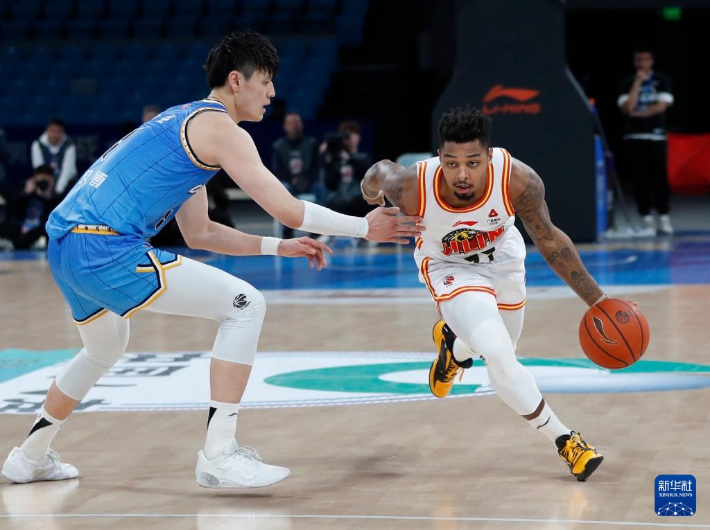 3月29日,北京北汽隊(duì)球員田宇翔(右)在比賽中突破。新華社記者 雒圓 攝