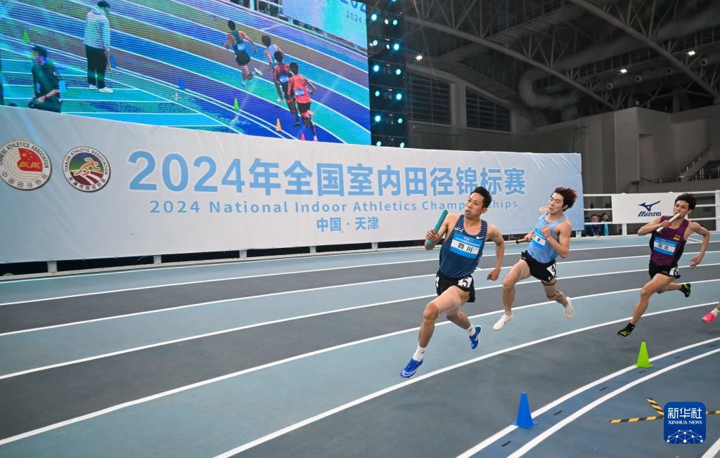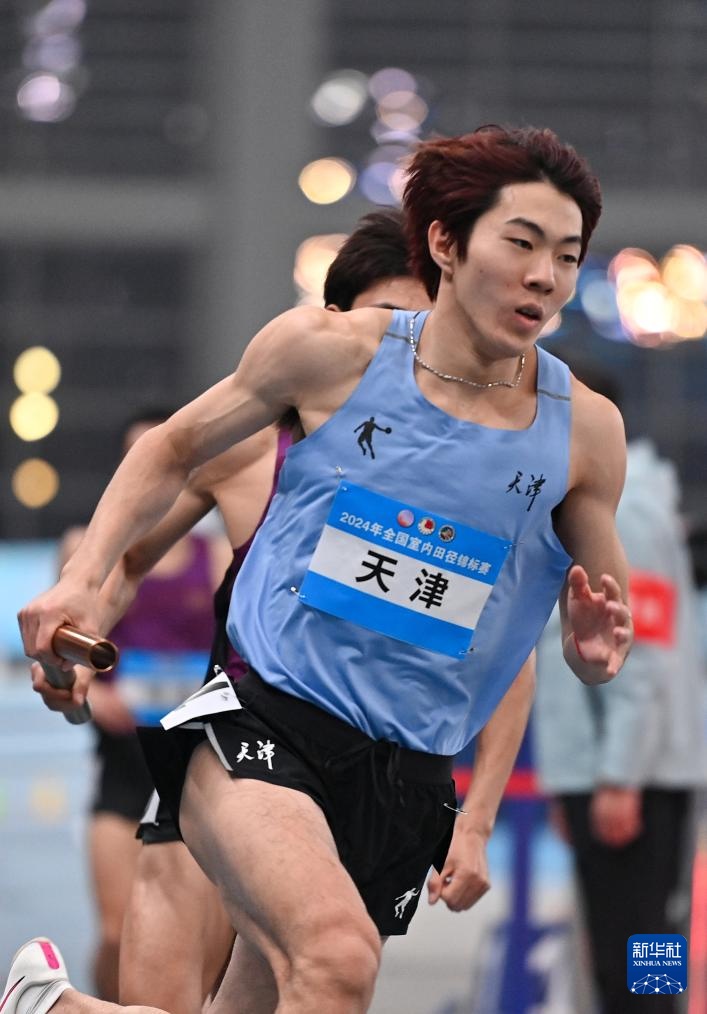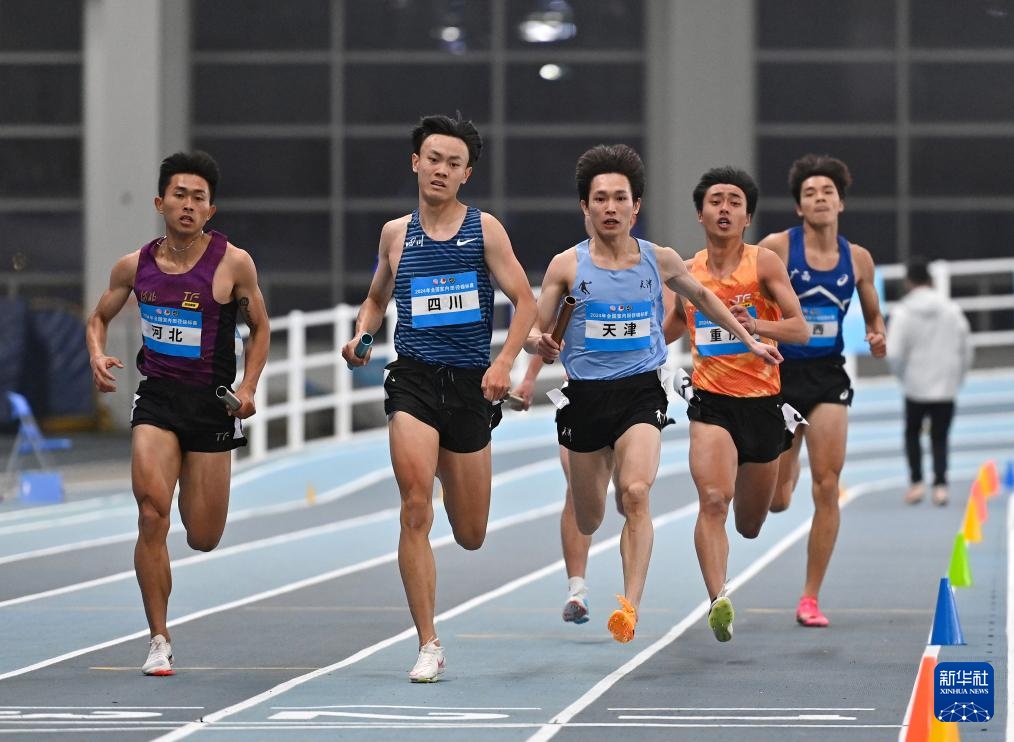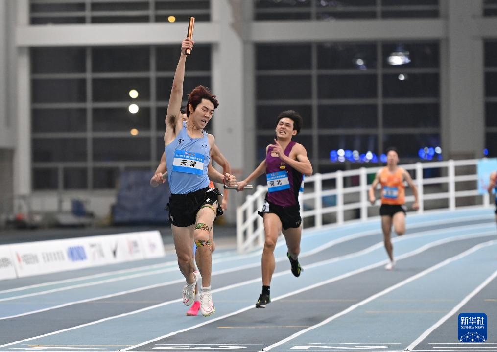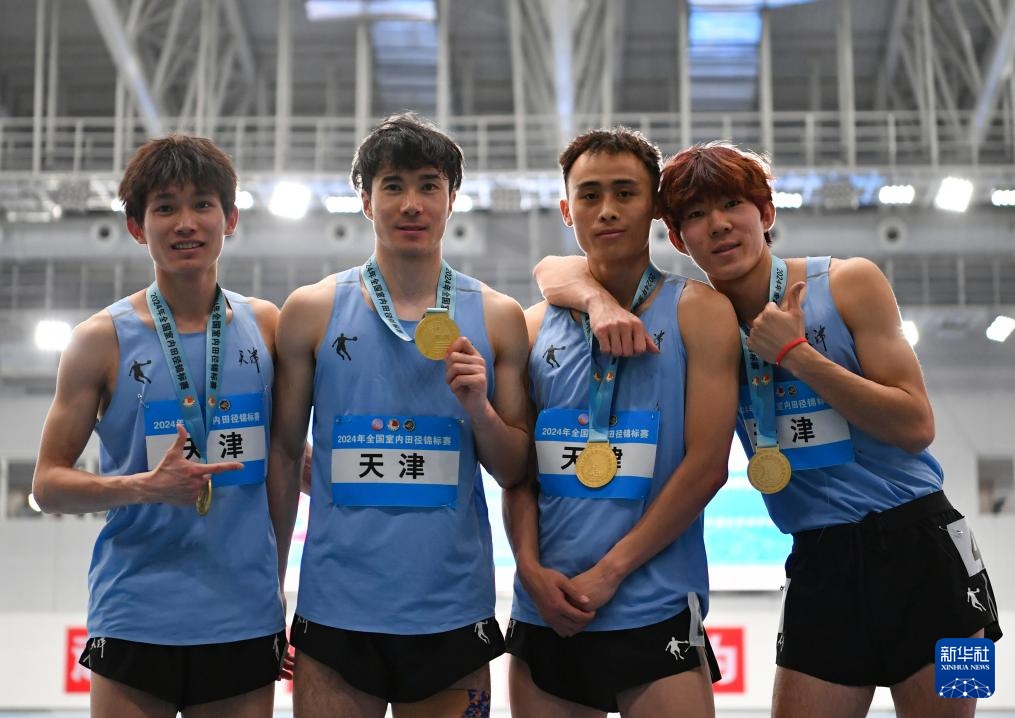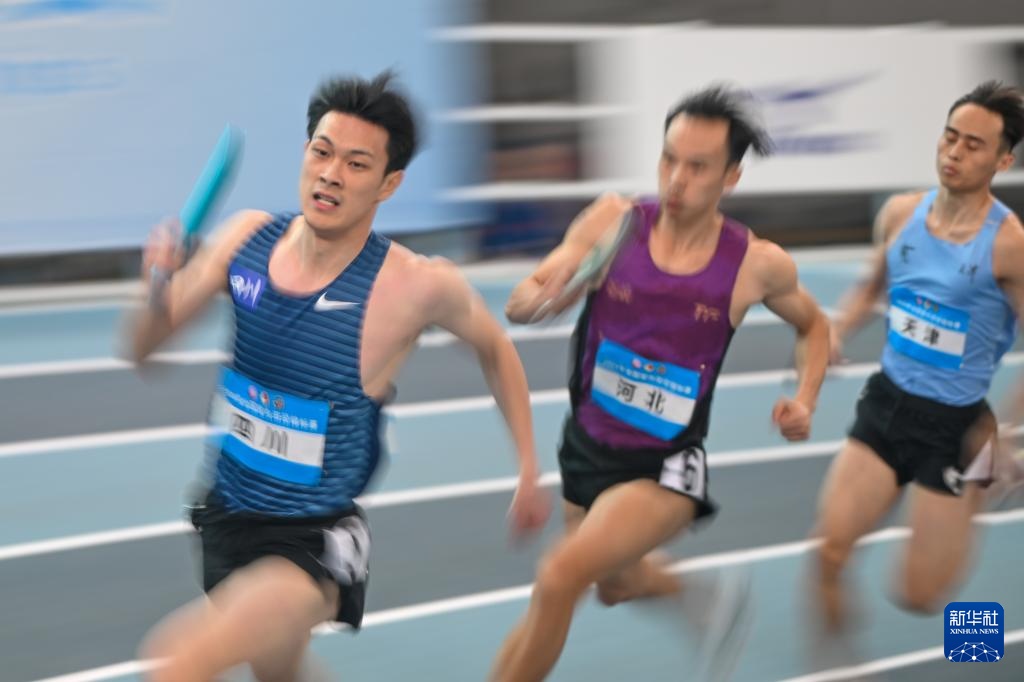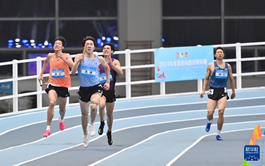 當日,2024年全國室內田徑錦標賽男子4X400米決賽在天津舉行。