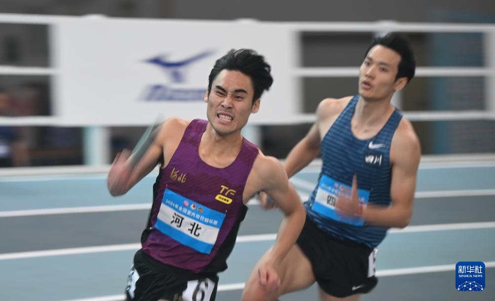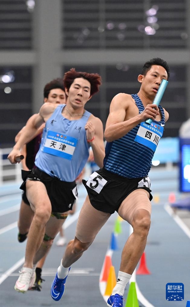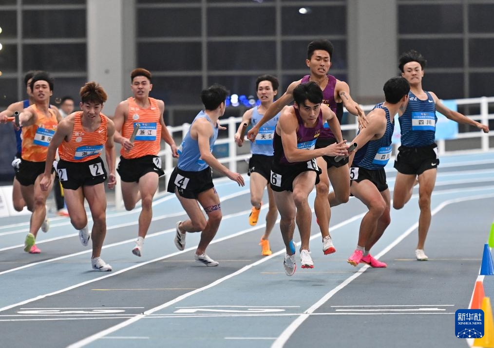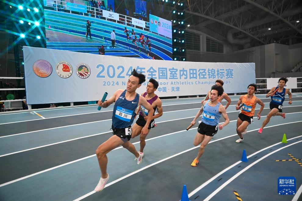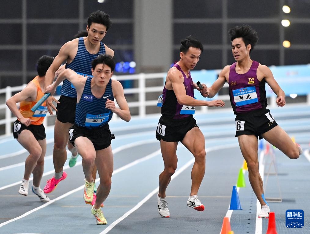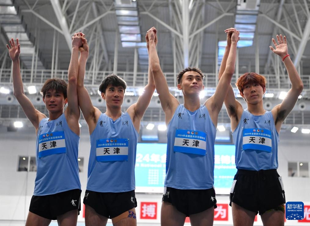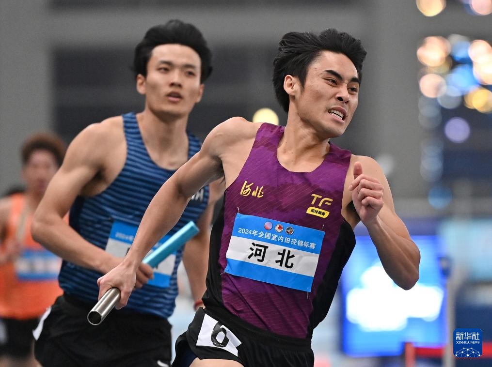 當日,2024年全國室內田徑錦標賽男子4X400米決賽在天津舉行。