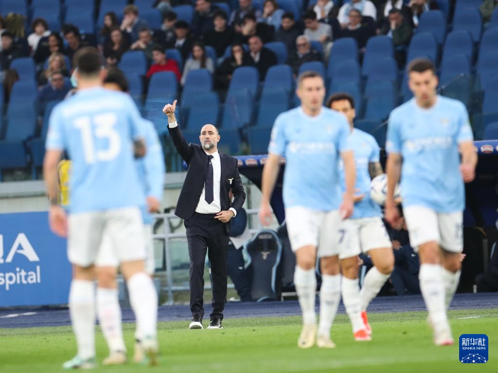 3月30日,拉齊奧隊(duì)主教練圖多爾在比賽中指揮。