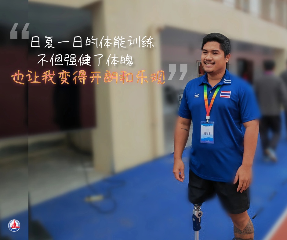 西里彭·朋湄戴著假肢來到投擲區(qū)