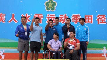云南省運動員李御進(右)與參賽運動員賽后合影。