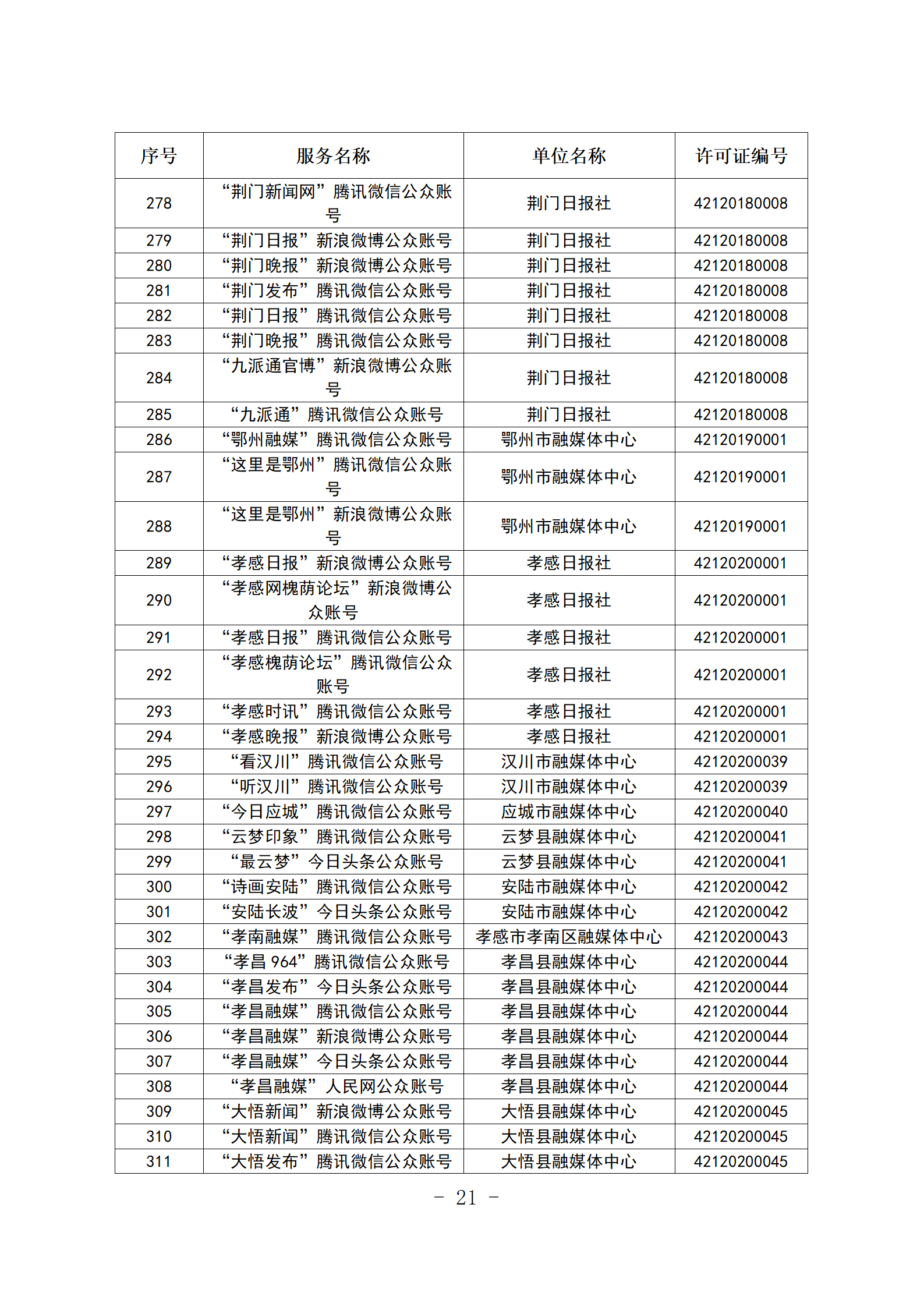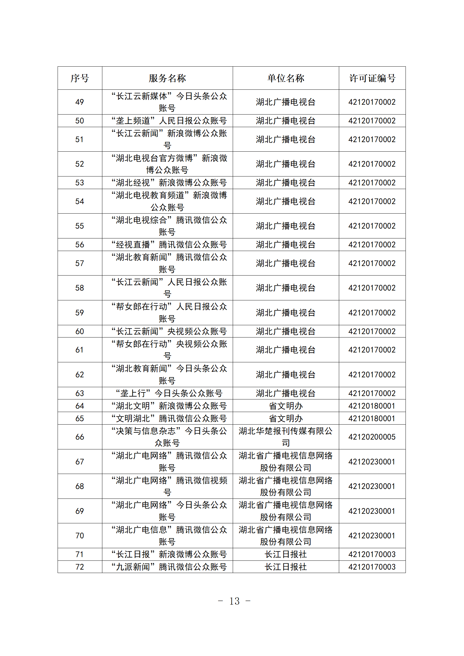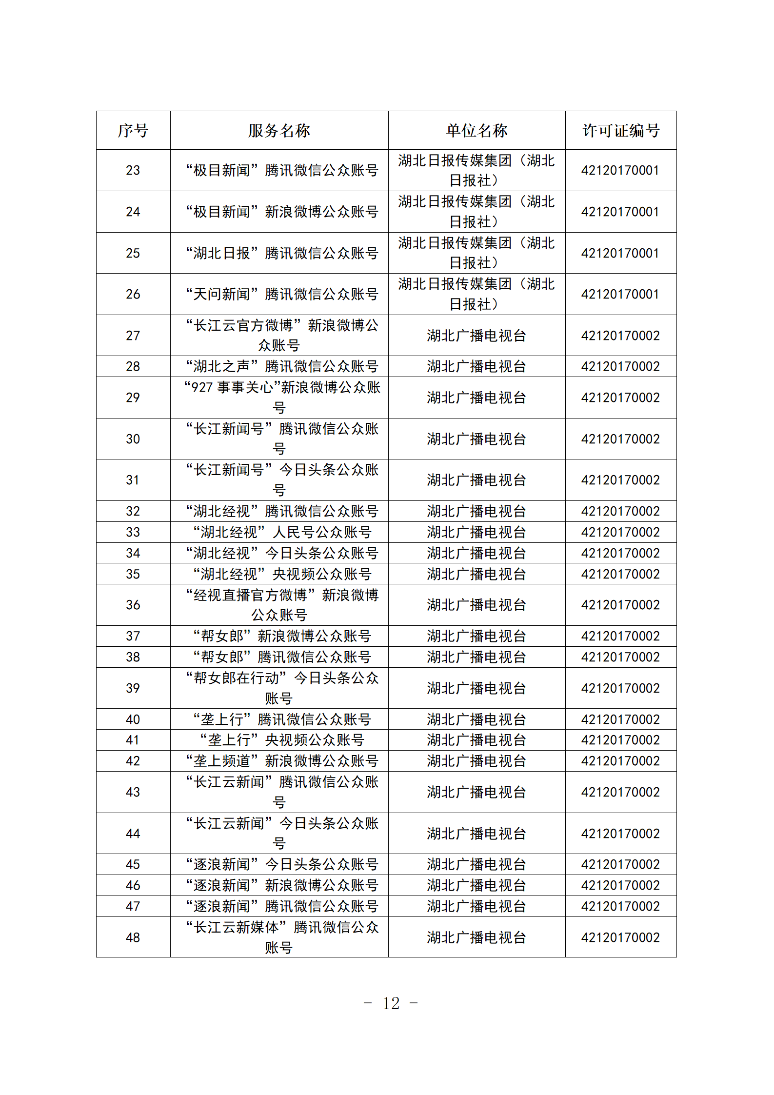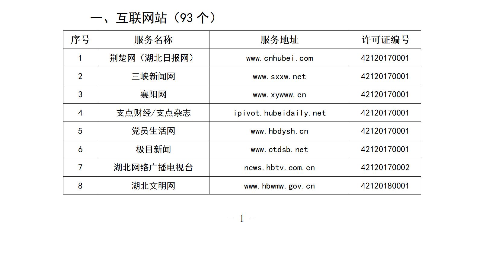 湖北省互聯(lián)網(wǎng)新聞信息服務(wù)單位信息
