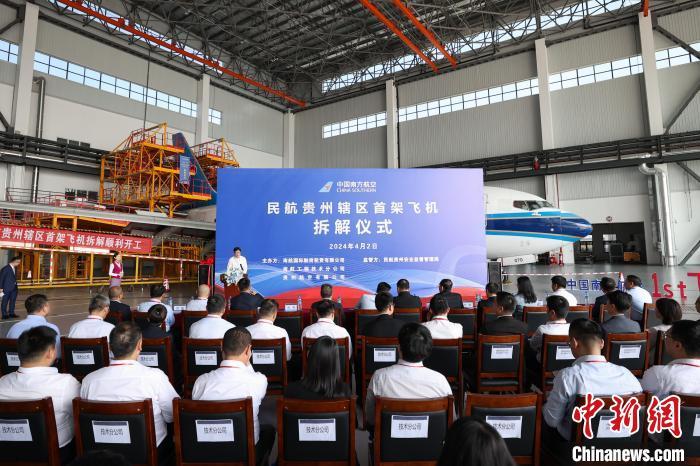 中新網貴陽4月2日電 (記者 瞿宏倫)民航貴州轄區首架飛機拆解開工儀式2日在中國南方航空貴州航空有限公司(以下簡稱“貴航”)飛機維修廠舉行,標志著該轄區飛機拆解業務正式開啟。