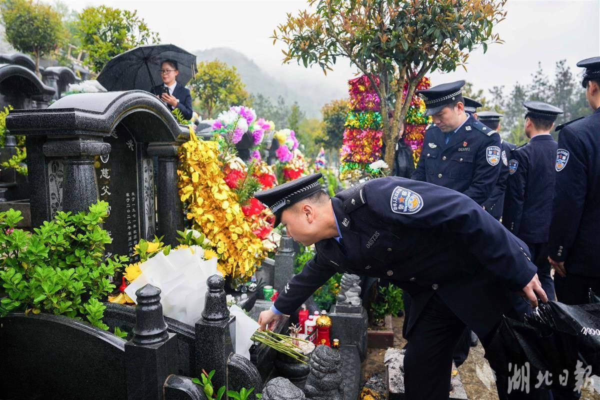 3月31日,鄂州市公安局法制支隊(duì)民警胡宸和母親來(lái)到父親胡佑明墳前祭掃。